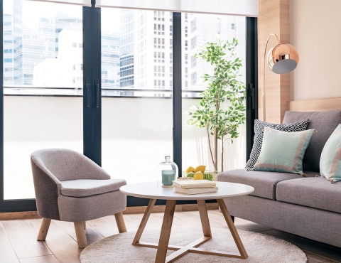 Modern, warm and inviting, our residences combine soothing, bespoke touches with breathtaking views of the city, which can be enjoyed from the privacy of your balcony.